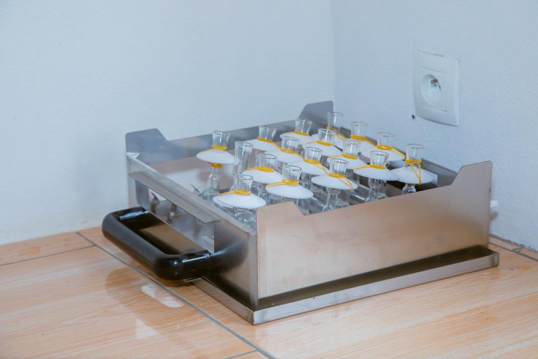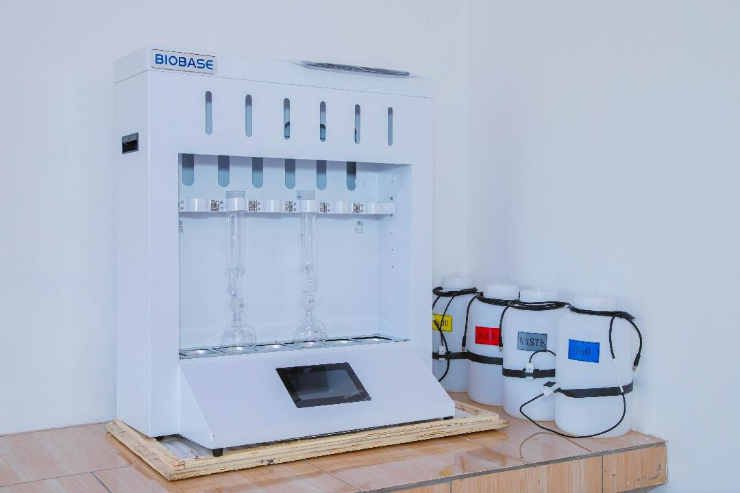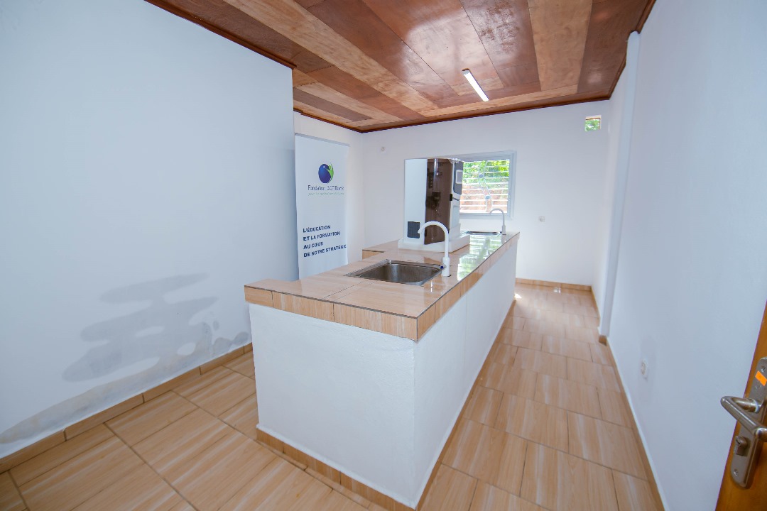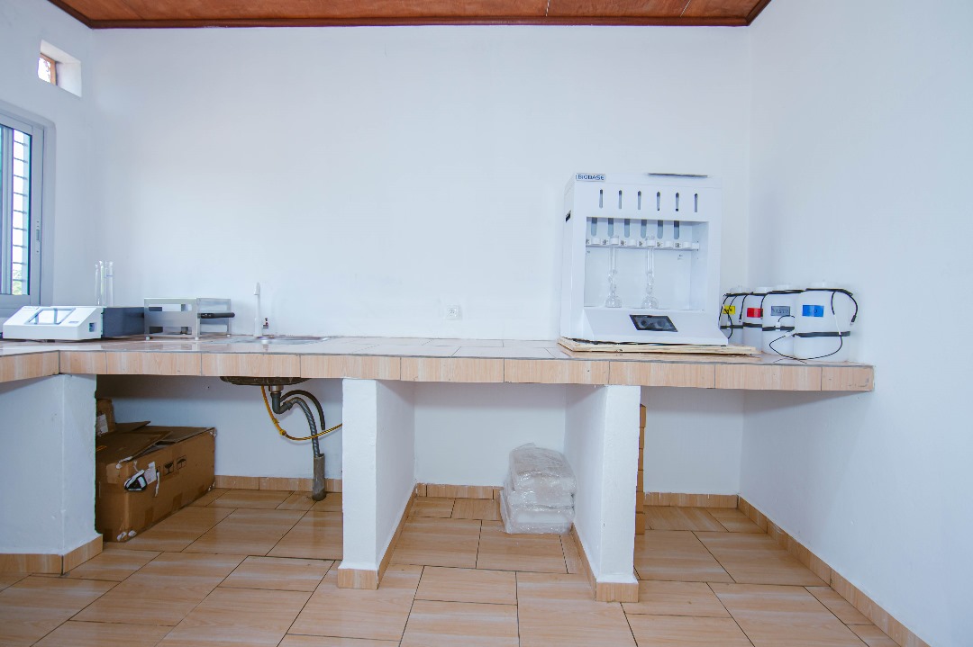 Initialement prévu pour une superficie de 150 m², nous avons obtenu un bâtiment de 212 m² suite à des ajustements et aménagements en cours de route sans rallonge sur le budget initialement prévu. Il contient en tout 11 pièces internes à savoir : quatre (4) salles de laboratoire, une (1) salle de formation pouvant accueillir en moyenne une dizaine de personnes, deux (2) bureaux, un (1) secrétariat et trois (3) toilettes modernes..